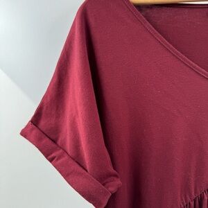 Brandless maroon short sleeve dress in size large. Features a flattering V-neckline, super soft fabric, and a relaxed, flowy fit for all-day comfort. Versatile and easy to style — perfect for casual outings, work, or dressing up with accessories.