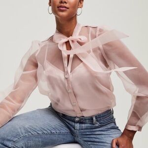 new white house black market diamond organza tie neck blouse S