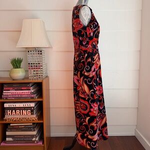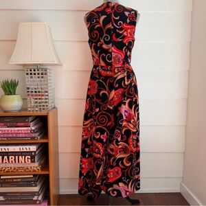 Vintage 1970s velvet paisley floral print jumpsuit with palazzo style legs. This jumpsuit had a beautiful and vibrant print that is reminiscent of Pucci. There is a back zipper and No interior labels, please see measurements below: