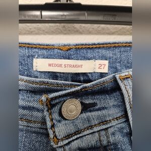 Levi's 27 wedgie straight leg high waist button fly raw hem distressed jeans