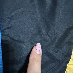 There’s a small dark mark on the front (tiny last picture) and a snag in the back (also pictured).