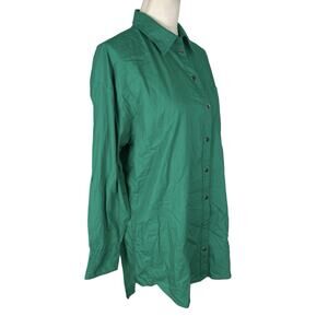 Anthropologie Maeve The Bennet Button Down Shirt Green Magnetic Buttons Sz Small