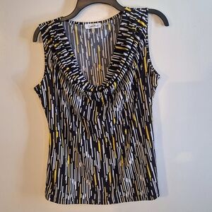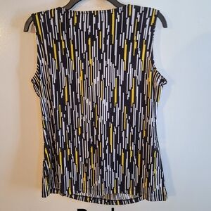 Chic Calvin Klein tank with bold stripes. Black, white, and yellow colorways. Perfect for versatile styling.