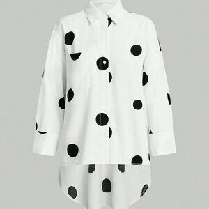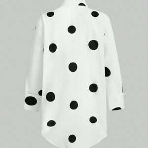 White Casual Women's Long Sleeve Polka Dot Print Loose Shirt