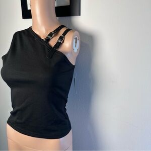 LIONESS Rebel Tank Top in Onyx black asymmetrical crop buckle punk grunge