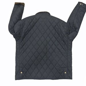 Classic and timeless Ralph Lauren quilted jacket in a rich navy blue. Features signature diamond quilting with a contrasting brown corduroy collar for a refined, heritage-inspired look. Finished with snap-button closure and multiple utility pockets.