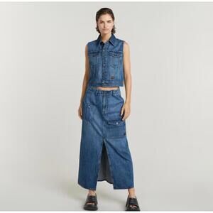 NWT G-Star RAW Women’s Shrunken Denim Vest in Faded Cliffside Blue, Size Small.