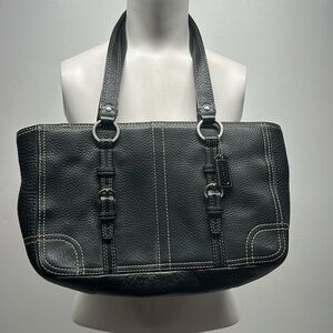 Coach Chelsea Purse Tote Handbag Pebbled Leather Black Silver Large Bag F12339