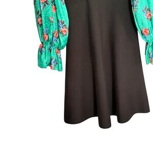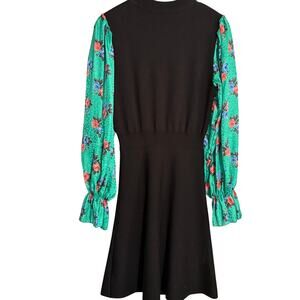 MSGM Sweater Dress S Floral Rose Balloon Sleeve Wool Black Quiet Luxury Glam