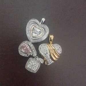 This stunning heart pendant set features elegant designs in silver and gold tones. Perfect for adding a touch of sophistication to any outfit.