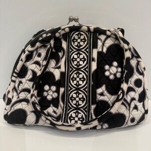 Vera Bradley Night and Day Quilted Cotton Kiss Lock Frame Bag Black White Floral