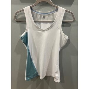 Alo Yoga CoolFit Athletic Tank Top Women's Size Medium White Teal V-Neck