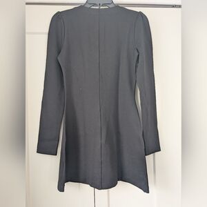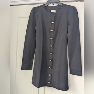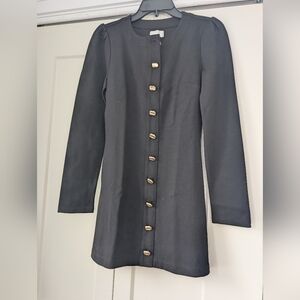 Chic black dress with elegant gold buttons. Perfect for any occasion. Long sleeves add sophistication.