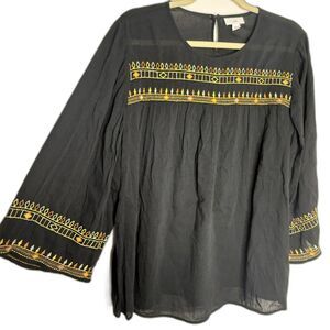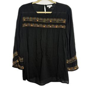 J Jill Black Embroidered Crew Neck Lightweight Cotton Blend Top Blouse Tunic M