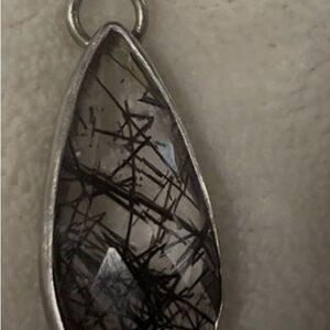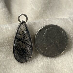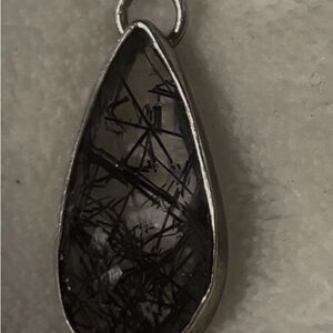 Elegant silver teardrop pendant featuring intricate black tourmaline inclusions. Perfect for any occasion.
