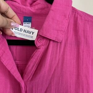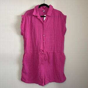 NWT Old Navy Waist-Defined Crinkle Gauze Romper Pink Summer Women's L