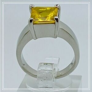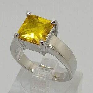 Keywords: Canary Yellow, Statement Ring, Cocktail Jewelry, Princess Cut, Silver Tone, Solitaire, Bold, Modern, Cubic Zirconia, Costume Jewelry, Sunshine, Vibrant