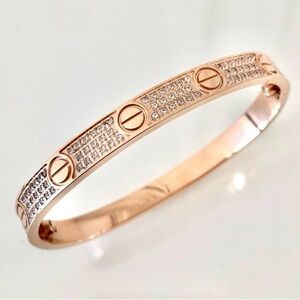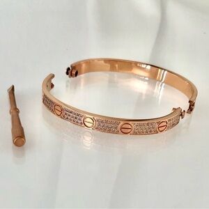 Pave Diamond LOVE Screw Bangle Bracelet with Screwdriver in Rose Gold