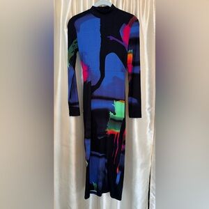 DESIGUAL HOLOGRAM LACROIX SLEEVE MIDI DRESS Size XS EUC