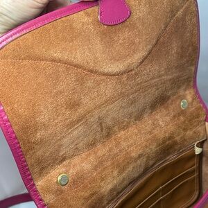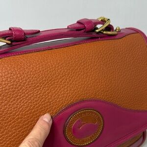 Dooney & Bourke Hand Painted Magenta Pink & Peanut Leather Carrier Bag (R701)
