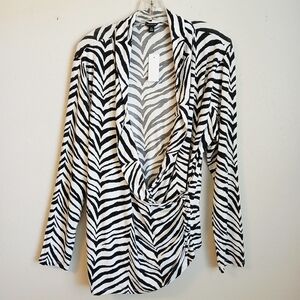Ann Taylor Zebra Print Shawl Collar Wrap Blouse Top
