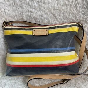 KATE SPADE | Hailey Westchester Forever multi Striped Coated Canvas Crossbody top zipper the inside lining has a side zipper two side pockets. Pre owned in good used condition two small scratches on the bag.see all pictures any questions please message.