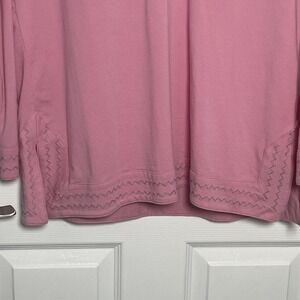 Lands End Pink Embroidered Split Neck Tunic Top Womens Medium 10-12 Long Sleeve
