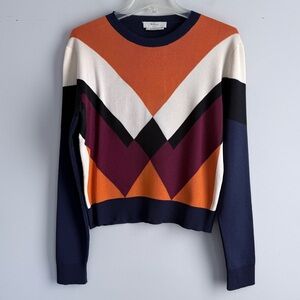 Mulberry England Silk Cotton Knit Sweater S Geometric Chevron Italy Luxury