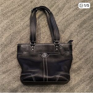 Vintage Coach black leather bag. Features gold hardware and a authentic tag.