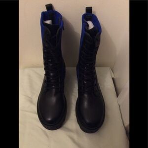 New Bar lll Taryinp combat boots in black and cobalt blue.