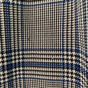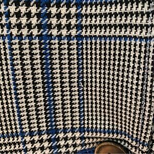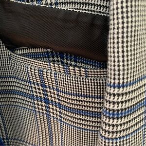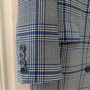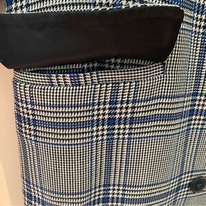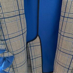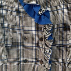 Elegant plaid coat with striking blue ruffle embellishment. Double-breasted style, flap pockets and button closure. Size 42 IT, about a US size 6. Worn a couple of times. Like new condition. See the photos.
