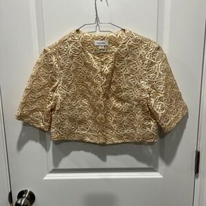 Calvin Klein Women Gold Sequin Lace Cropped Bolero Jacket Size S