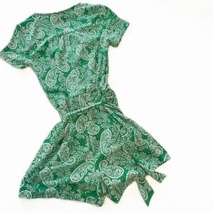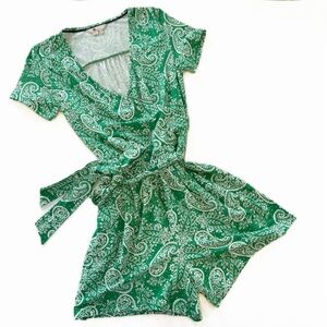 Boden Womens Sz 2 Green Paisley Caroline Playsuit Romper Jersey Belted Casual