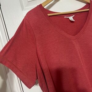 ATHLETA Women’s Rust Orange Breezy Scoop V-Neck Active Tee Top Size 1X