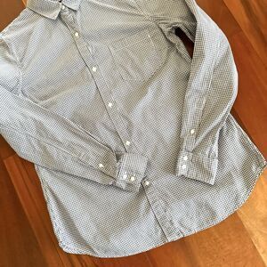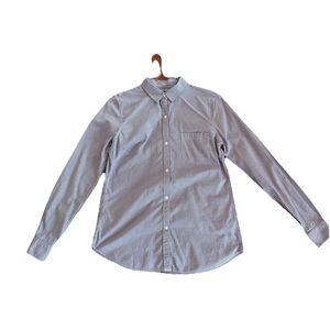 Gap Women's L TALL Button Up Shirt Blue White Gingham Check Long Sleeve Cotton