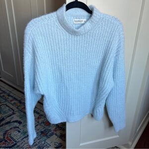 Abercrombie & Fitch Soft Collection Light Blue Fuzzy Mock Neck Ribbed Sweater