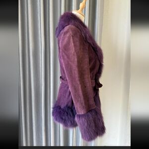 80s Purple FOX fur lined suede iacket with belt #foxfur #suede