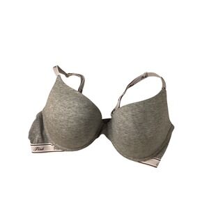 Victorias Secret PINK Wear Everywhere T-Shirt Bra Gray Logo Band 38D Underwire