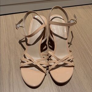 Stuart Weitzman Starla Block Heel Strappy Sandals in Beige Size 9.5
