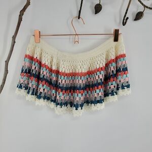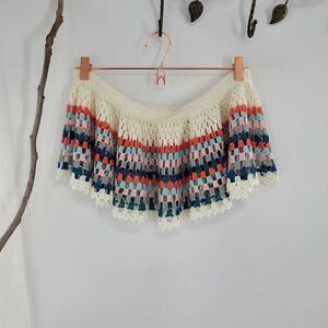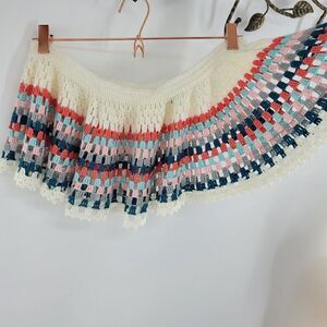 new without tag flouncy sits on hip skirt/beach cover up hand crochet. Please see photos for measurements shown. Preloved condition. All sections of interest as well any known flaws have been documented in the photos and noted as thoroughly as possible. However, if there are any questions feel free to ask.