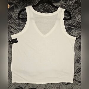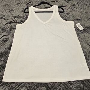 Chic white tank top by Torrid. Features a flattering V-neck, sleeveless, classic fit, signature jersey, straight hemline in Bright White.