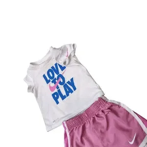 Nike Toddler Dri-FIT 2-Piece Outfit Love To Play Pink White Size 12M