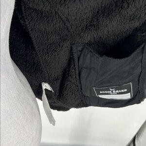 Eddie Bauer Kids black sherpa fleece hoodie jacket. Super soft and cozy plush fleece with full zip front and attached hood. Lightweight yet warm, perfect for everyday wear, school, outdoor activities, or layering in colder weather.