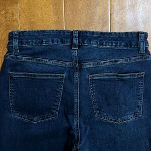 Casual, mid rise, dark wash, five pockets, slim, skinny, tapered, flattering, coastal, old money, nautical, business, casual, school, academia