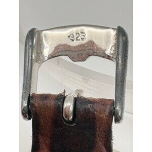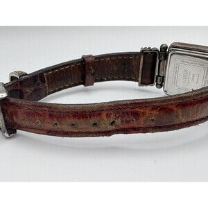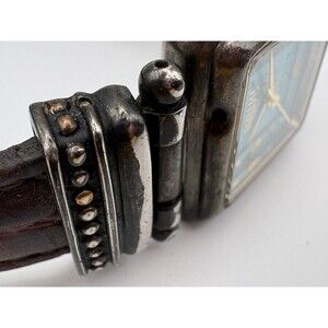 Elevate your accessory game with this beautiful Vintage Ecclissi Sterling Silver Watch. This stunning timepiece features a genuine turquoise dial with a distinctive "spiderweb" matrix, set within a sophisticated square 925 sterling silver case. The elegant face is detailed with gold-tone Arabic numerals at the 12, 3, 6, and 9 positions, gold matching hands, and a classic black railroad minute track. Powered by a reliable Japan Quartz Movement, it offers precision and style. The watch is moisture-resistant and includes a durable stainless steel back. It comes on a well-loved, used brown leather strap featuring ornate sterling silver and gold-tone western-style buckle and loop accents. A brand new battery fitted recently ensures it is ready for immediate wear. This collectible piece is perfect for lovers of Southwestern or bohemian vintage styles.