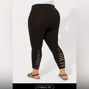 Stylish black leggings featuring trendy cut-out details. Perfect for a chic and comfortable look.