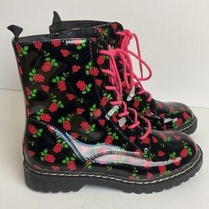 Betsey Johnson Floral Rose Combat Boot Patent Leather 8.5M Dark Princess Goth