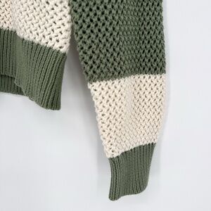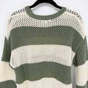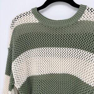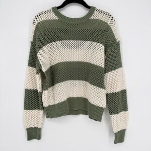 Z Supply Boardbeach Stripe Cotton Crochet Knit Pullover Sweater Palmgreen Ivory