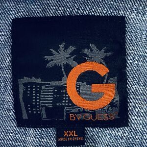 G by Guess Men's Denim Trucker Jacket - Layered Jersey Hood - Flap Pockets - XXL