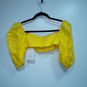 Rumer Sunshine Yellow Delphine Linen Puff Sleeve Crop Top Size XXS NWT